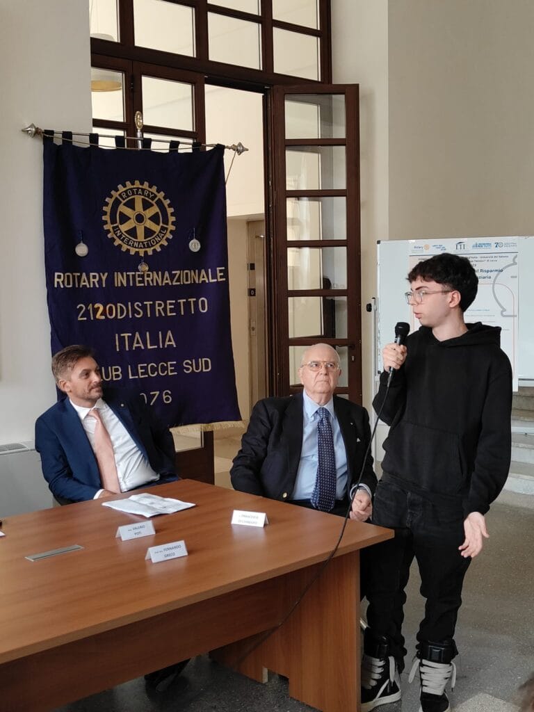 Molti gli intervenuti Dott. Antonio Bellisario Braia, Governatore Distretto 20120 Rotary Internationale Puglia e Basilicata, Avv. Donata Anna Perrone, Presidente del Rotary Club Lecce Sud, Dr. Sergio Magarelli già Direttore della Banca d’Italia, Sede di Bari, Dr. Fabrizio Basile Direttore della Banca d’Italia, Filiale di Lecce, Dr. Sandro Roddi Vice Direttore della banca d’Italia, Filiale di Lecce, Dr. Francesco Occhinegro già Direttore della Banca d’Italia, Sede di Potenza Prof.ssa Valeria Stefanelli, Professoressa Ordinaria di Economia degli Intermediari Finanziari e Presidente del Consiglio Didattico di Area Economico-Quantitativa Presso Università del Salento, Prof. Avv. Francesco Giacomo Viterbo, Professore Ordinario di Diritto Privato presso l’Università del Salento, Membro del Collegio di Bari dell’Arbitro Bancario Finanziario, Prof. Avv. Fernando Greco Professore Ordinario di Diritto Privato e Diritto della Banca, della Finanza e delle Assicurazioni presso l’Università del Salento già Vice Presidente del Collegio di Roma dell’Arbitro Bancario Finanziario, Prof. Valerio Potì, Professor of Finance presso la University College Dublin Professore Ordinario di Econometria presso la Università degli Studi di Bari “A.Moro”.